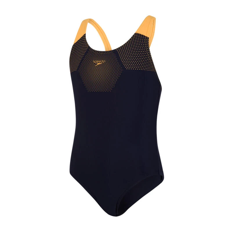 Voor een sportievere look kiest u dit zwempak met contrasterende bandjes en een bijpassend modern zeshoekig logo. Het Muscleback zwempak van Speedo heeft dikke schouderbanden die voor meer bewegingsvrijheid over de schouderbladen zorgen en een goede pasvorm garanderen. De middellange snit biedt een perfecte bedekking voor regelmatige zwemsessies. Onze zachte, rekbare Endurance®10-stof houdt haar comfortabel, en dankzij de Creora® HighClo-technologie zal dit zwempak haar langer passen als gegoten.