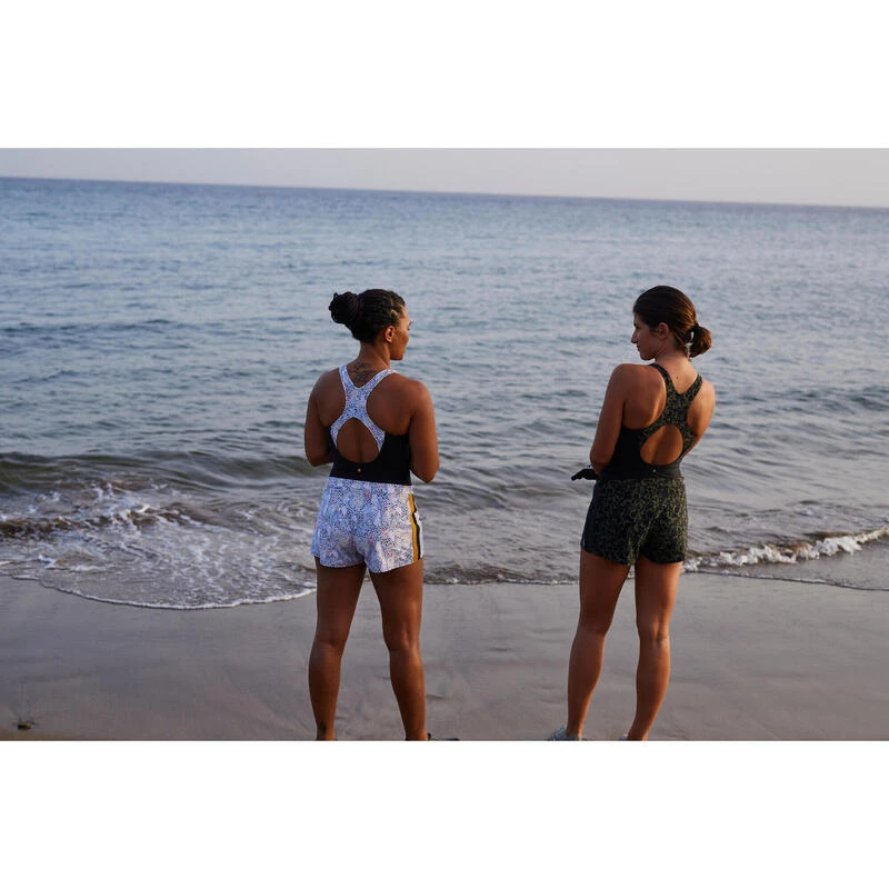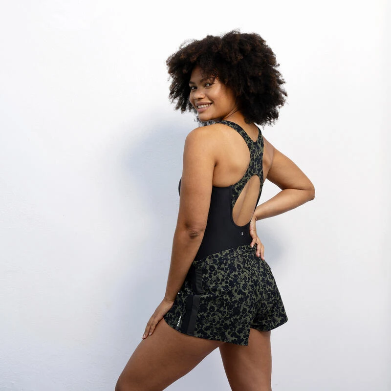 Kies dan voor dit nieuwe badpak met gekruiste rug en ingewerkte beha voor extra steun, die bovendien een losvallende short heeft.