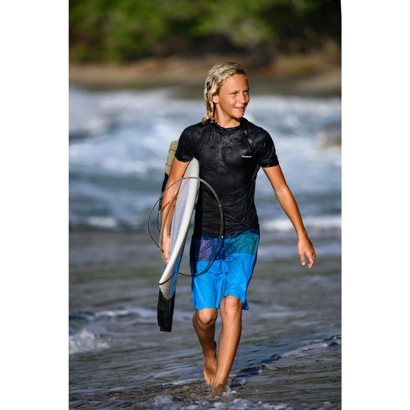 8789498Ons team ontwikkelde deze zwemshort / boardshort voor ervaren surfers van 7 tot 15 jaar.Stof die in vier richtingen rekt voor meer bewegingsvrijheid, platte tailleband zodat de short goed blijft zitten in de golven, zijzakje met rits dat niet in de weg zit.