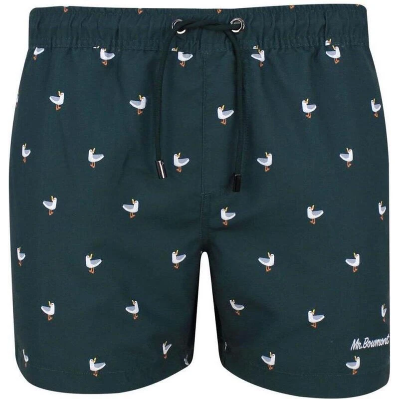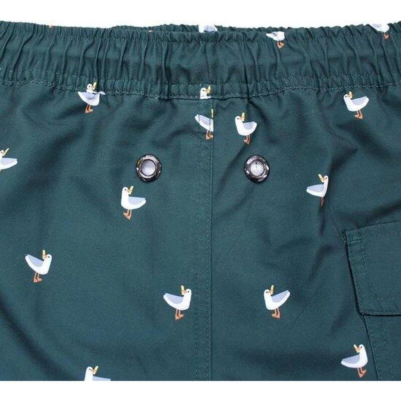 De Skybird is een Pine Green zwemshort met een relatief korte pasvorm. De prent bestaat uit meeuwen met een Franse Frie erbij.
