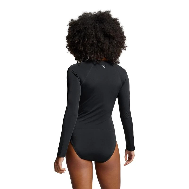 Ga dit seizoen vol zelfvertrouwen de golven tegemoet in dit eendelige zwempak voor dames, waarin de stijlen van het strand en de straat perfect samenkomen. Dankzij de performance fit zullen alle ogen op jou zijn gericht, terwijl jij je beste prestaties levert. Dit surfpak met lange mouwen voor dames is afgewerkt met een duurzame, gelaste hightech-rits en het PUMA-logo. Neem zorgeloos een duik in het diepe met PUMA Swim.