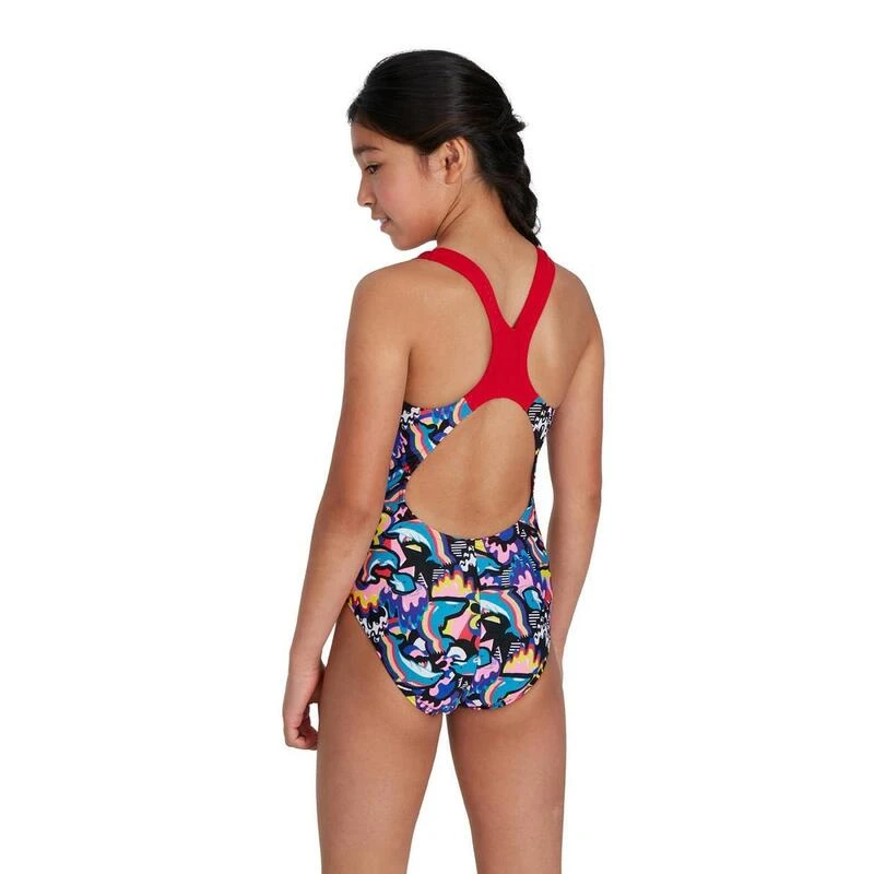 This striking splashback swimsuit is perfect for swim lessons, the splashback straps are set away from the shoulder to increase freedom of movement without feeling restricted.